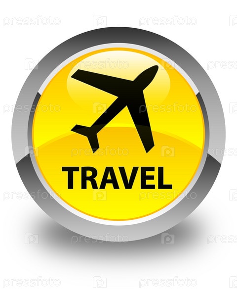 Путешествие (икона самолета) глянцевая желтая круглая кнопка