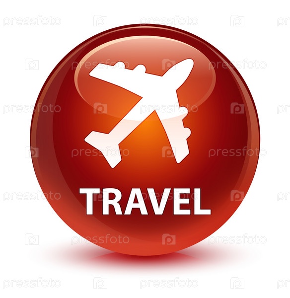 Путешествие (икона самолета) стеклянная коричневая круглая кнопка