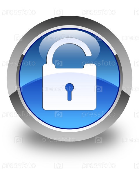 Разблокировать значок блестящей синей круглой кнопки