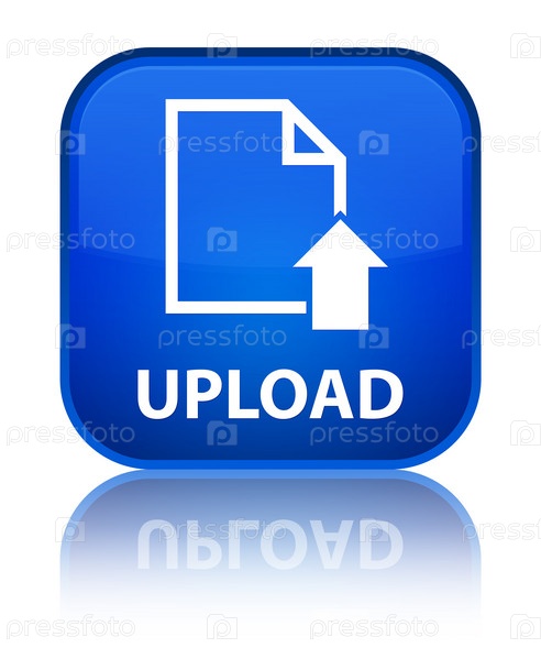 Загрузить (икона документа) специальная синяя квадратная кнопка
