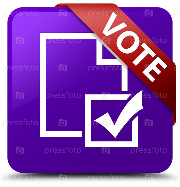 Голосование (икона опроса) фиолетовая квадратная кнопка красная лента в углу