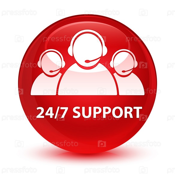 Поддержка 24/7 (икона команды по уходу за клиентами) стеклянная красная круглая кнопка