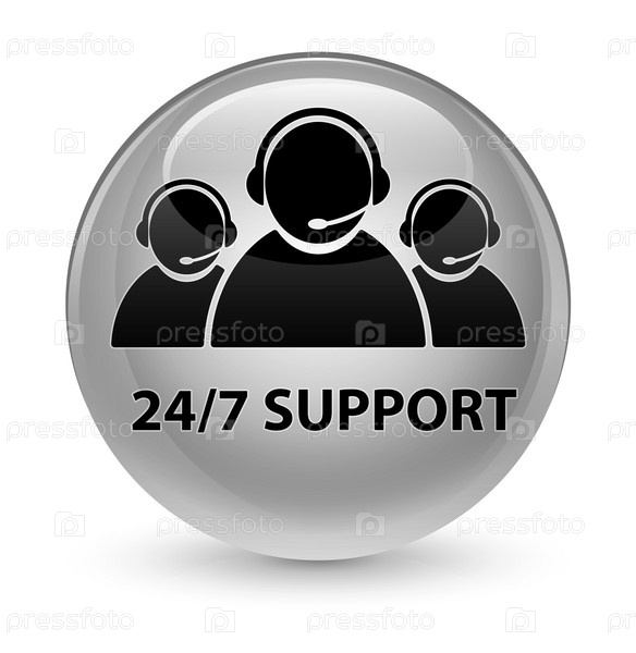 Поддержка 24/7 (икона команды по уходу за клиентами) стеклянная белая круглая кнопка