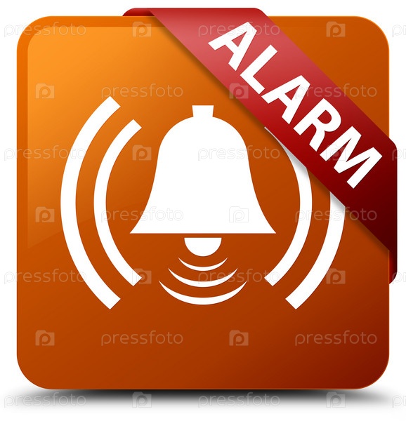 Сигнализация (икона колокола) коричневая квадратная кнопка красная лента в углу