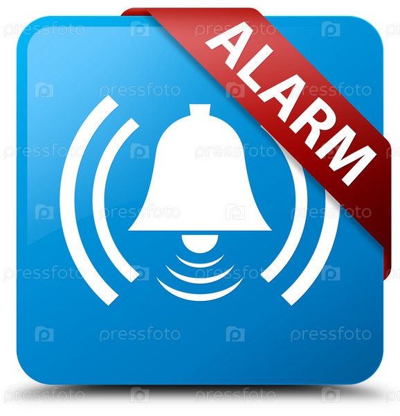 Сигнал тревоги (икона колокола) синий голубой квадратный кнопка красная лента в углу