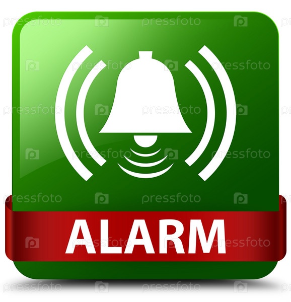 Сигнализация (икона колокола) зеленая квадратная кнопка красная лента посередине