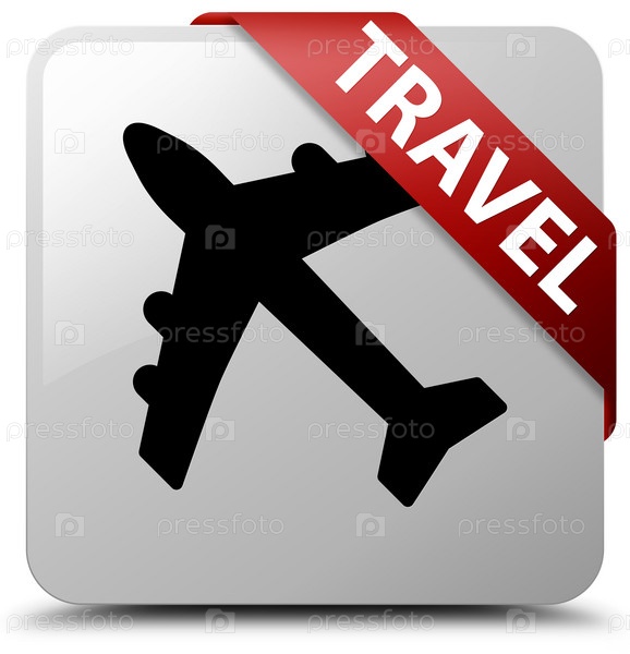 Путешествие (икона самолета) белая квадратная кнопка красная лента в углу
