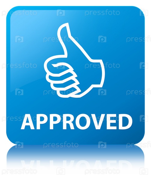 Утверждена (икона поднятия большого пальца) синяя синевая квадратная кнопка