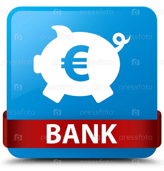 Банк (piggy box euro sign) синий голубой квадратный кнопка красная лента посередине