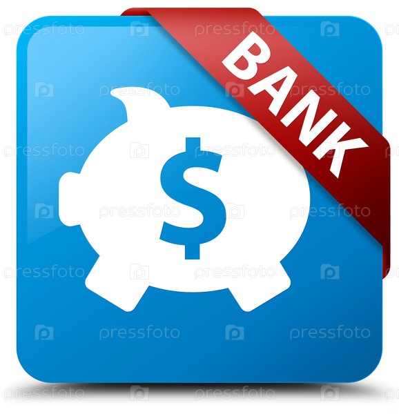 Банк (знак доллара свинины) синий голубой квадратный кнопка красная лента в углу