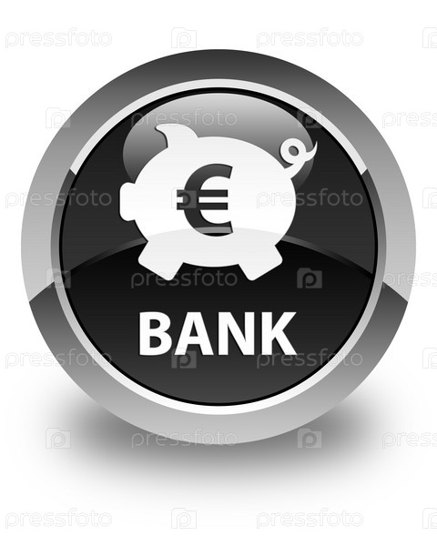 Банк (piggy box euro sign) глянцевая черная круглая кнопка