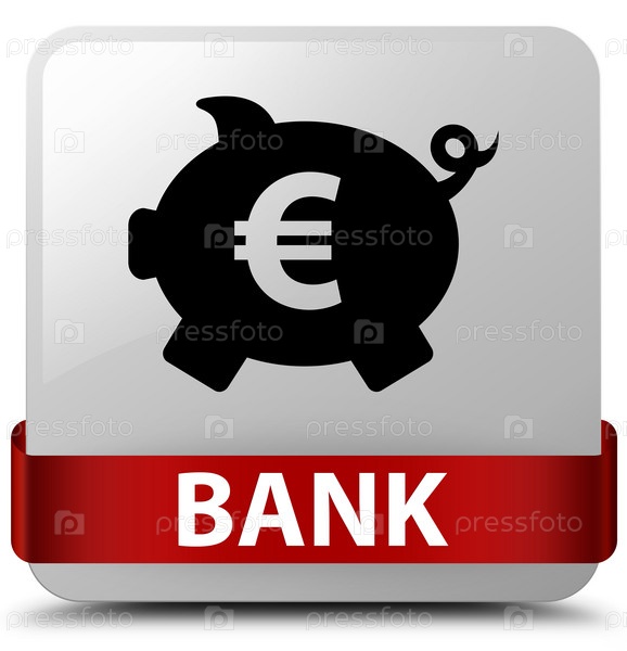 Банк (piggy box euro sign) белая квадратная кнопка красная лента посередине