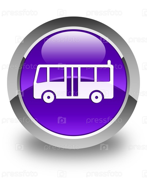 Икона автобуса блестящая фиолетовая круглая кнопка