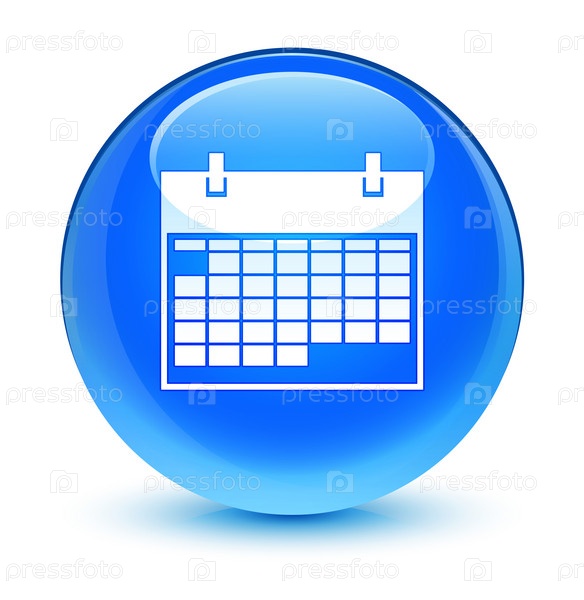 Икона календаря стеклянный синий синий круглый кнопка
