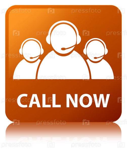 Позвоните сейчас (икона команды по уходу за клиентами) коричневая квадратная кнопка