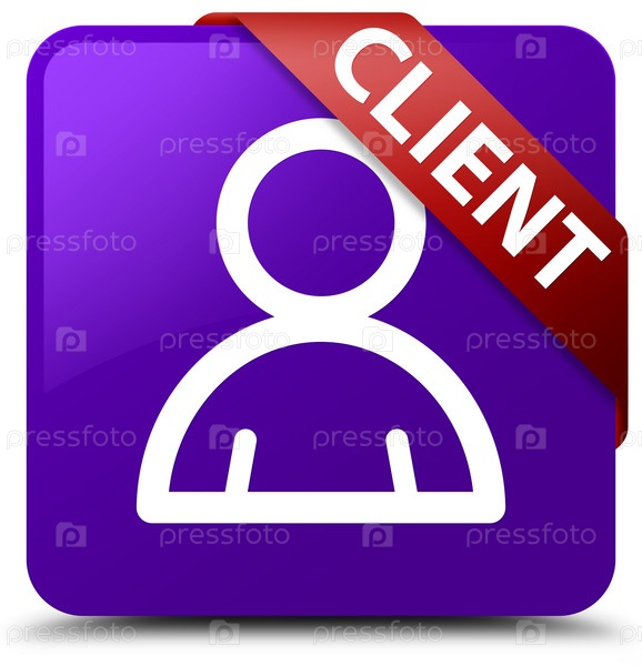 Клиент (икона члена) фиолетовая квадратная кнопка красная лента в углу