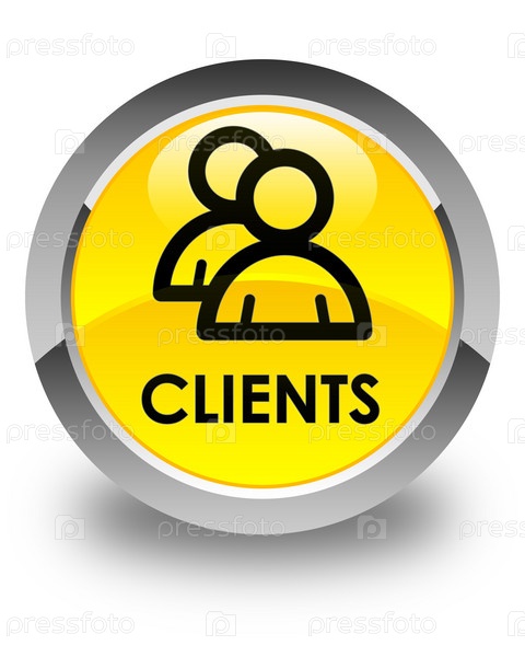 Клиенты (икона группы) блестящая желтая круглая кнопка