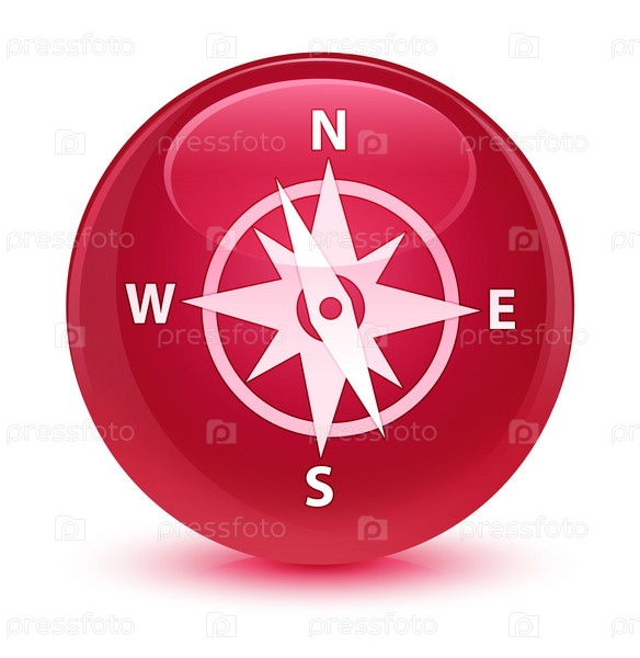 Икона компаса стеклянная розовая круглая кнопка
