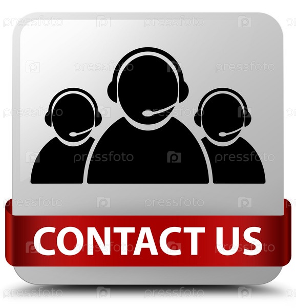 Свяжитесь с нами (икона команды по обслуживанию клиентов) белая квадратная кнопка красная лента посередине