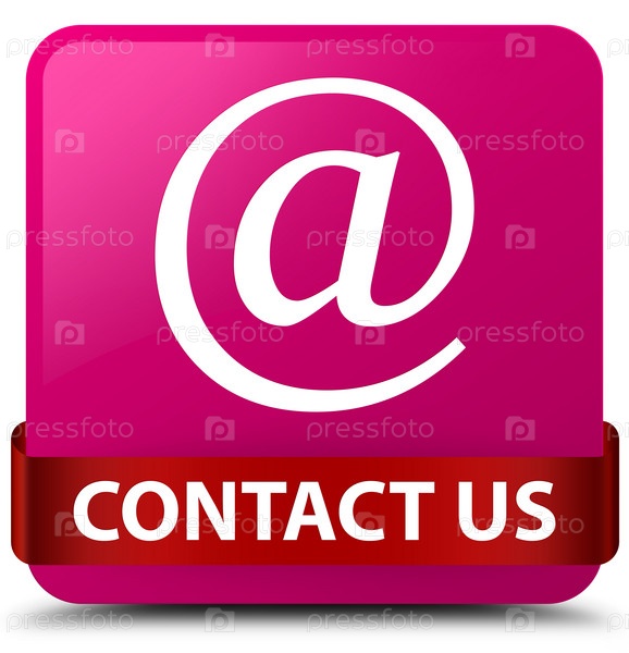 Связаться с нами (икона адреса электронной почты) розовая квадратная кнопка красная лента посередине