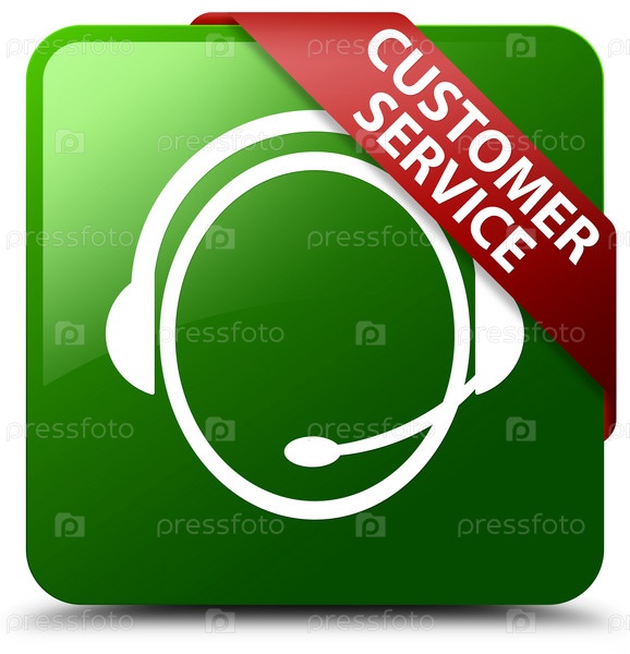 Служба поддержки клиентов (икона обслуживания клиента) зеленая квадратная кнопка красная лента в углу