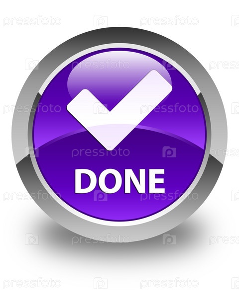 Сделано (икона проверки) глянцевая фиолетовая круглая кнопка