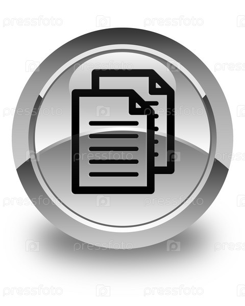 Икона документов блестящая белая круглая кнопка