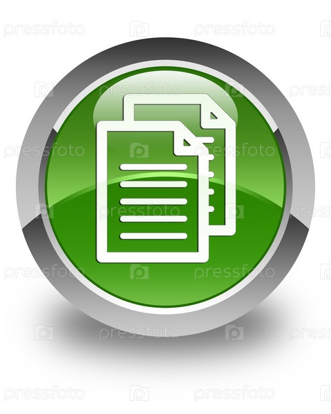 Икона документов глянцевая мягкая зеленая круглая кнопка