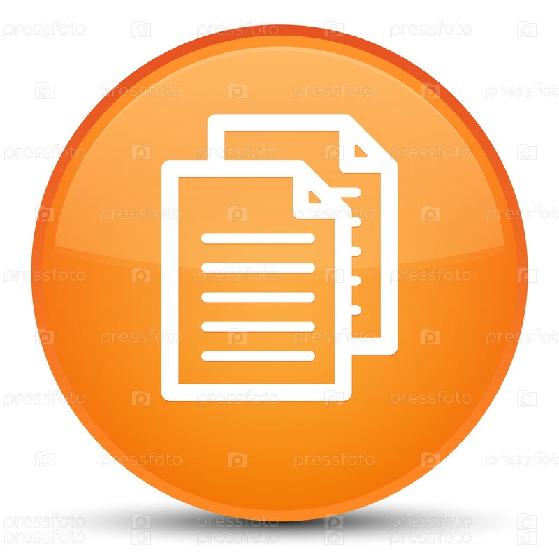 Икона документов специальная оранжевая круглая кнопка
