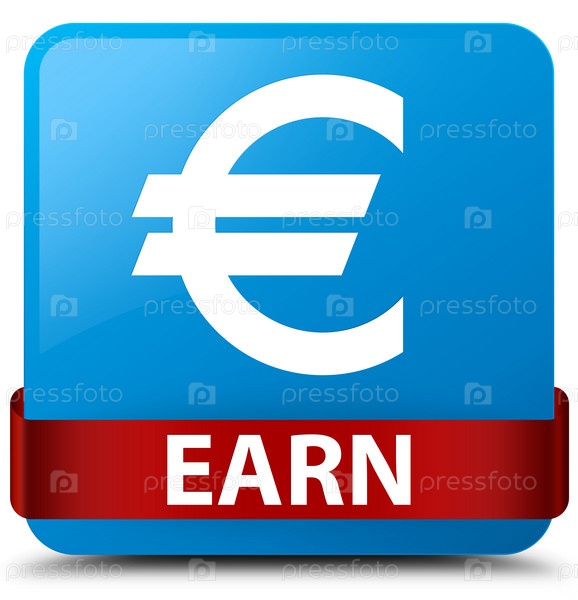 Заработать (знак евро) цыановый синий квадратный кнопка красная лента посередине