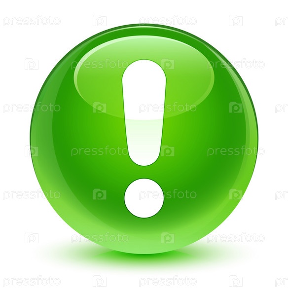 Икона восклицательного знака стеклянная зеленая круглая кнопка