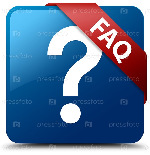 FAQ (икона вопроса) синяя квадратная кнопка красная лента в углу