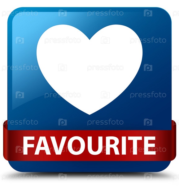 Любимая (икона сердца) синяя квадратная кнопка красная лента посередине