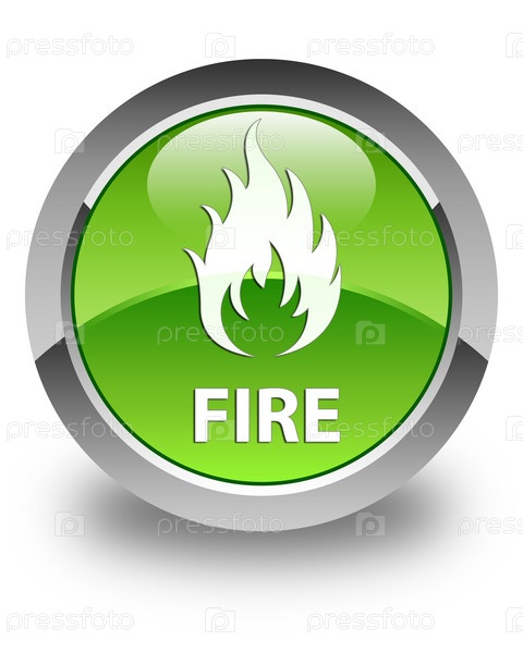 Глянцевая зеленая круглая кнопка 'Огонь'