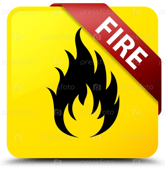 Огонь желтый квадратный кнопка красная лента в углу