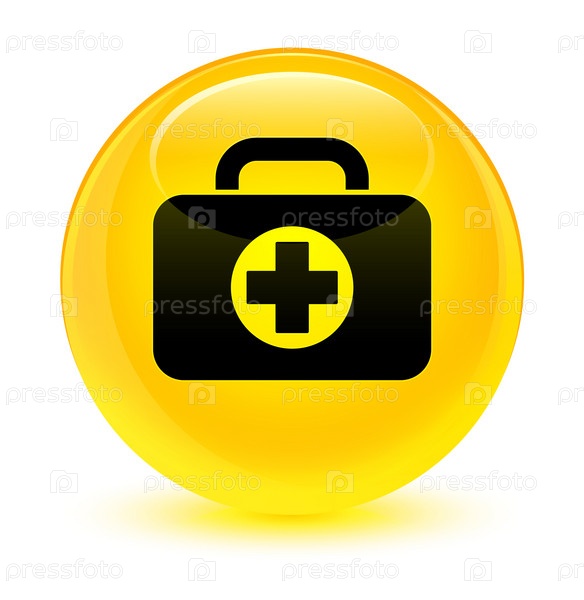Икона пакета первой помощи стеклянный желтый круглый кнопка