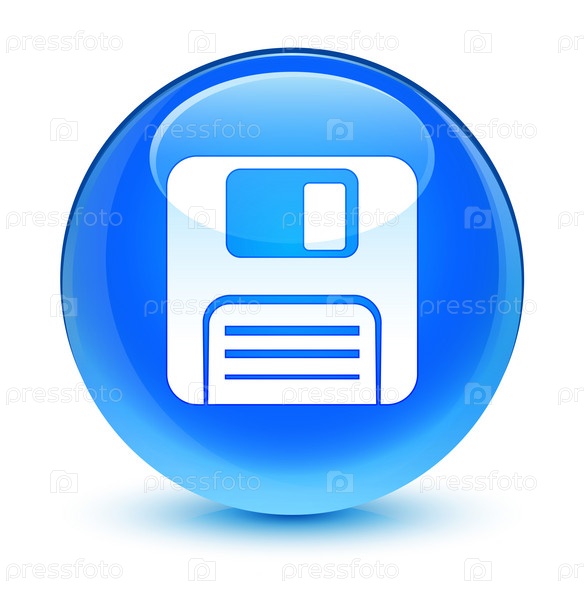 Иконка дискеты стеклянный синий голубой круглый кнопка