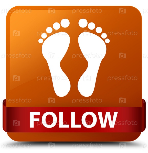 Следить (икона отпечатков) коричневая квадратная кнопка красная лента посередине