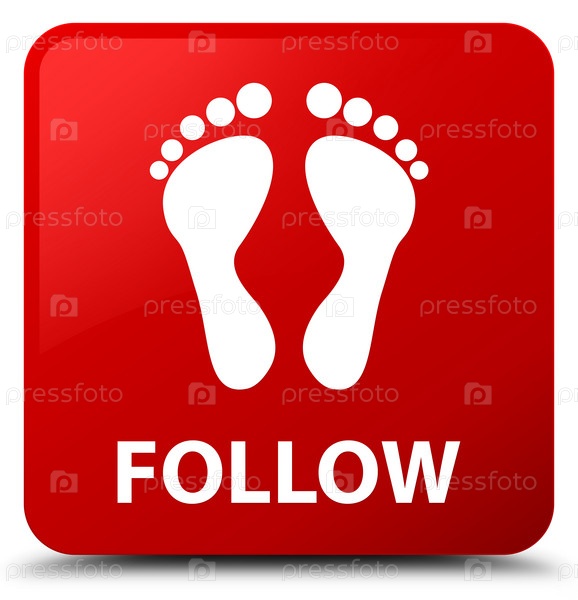 Следуйте (икона отпечатков) красная квадратная кнопка