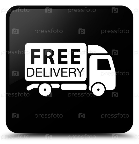 Икона бесплатного грузовика для доставки черная квадратная кнопка