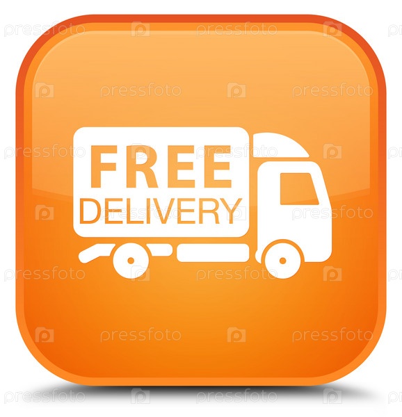 Икона бесплатного грузовика для доставки специальная оранжевая квадратная кнопка
