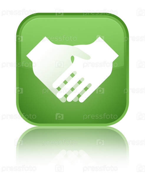 Икона рукопожатия специальная мягкая зеленая квадратная кнопка
