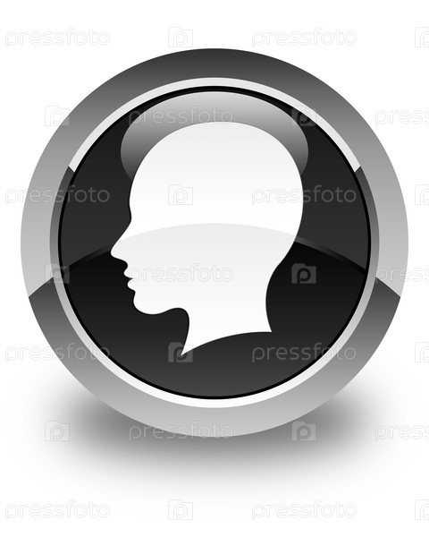 Голова икона женского лица глянцевая черная круглая кнопка