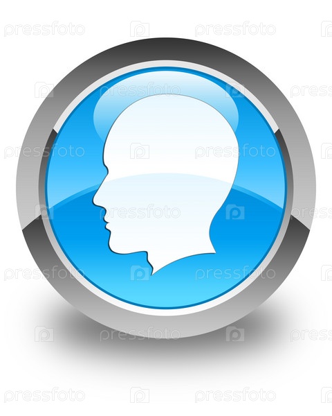 Голова мужское лицо икона блестящий синий цвет голубой круглый кнопка