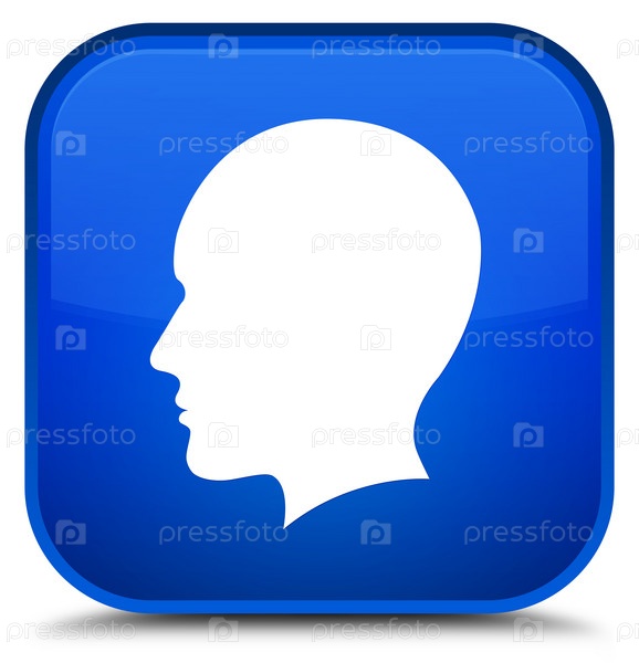 Глава мужского лица икона специальная синяя квадратная кнопка