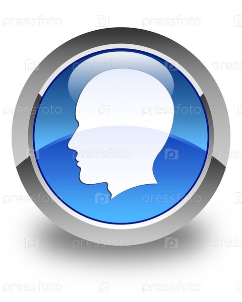 Голова икона мужского лица блестящая голубая круглая кнопка