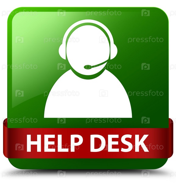 Help desk (икона обслуживания клиентов) зеленая квадратная кнопка красная лента посередине
