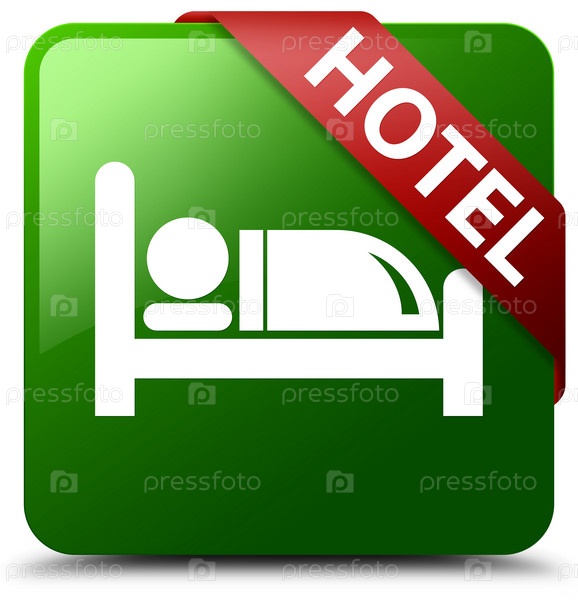 Отель зеленый квадратный кнопка красная лента в углу