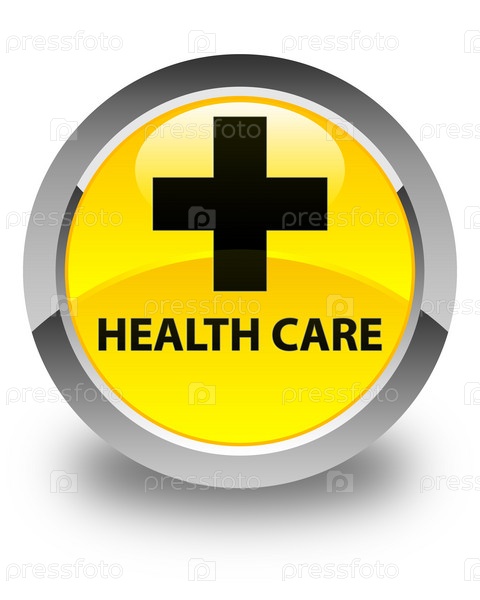 Здравоохранение (плюс знак) глянцевая желтая круглая кнопка