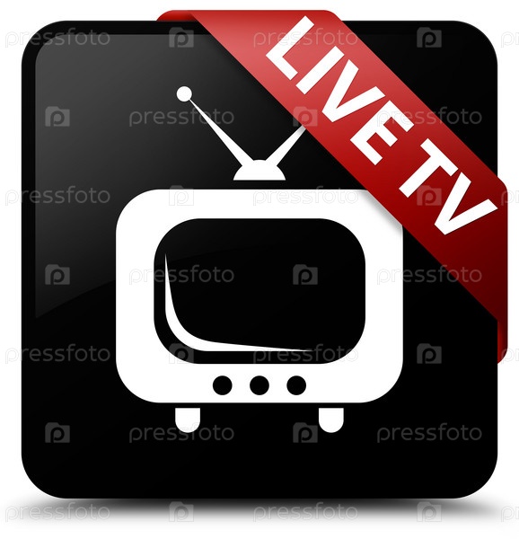 Живое телевидение черный квадратный кнопка красная лента в углу
